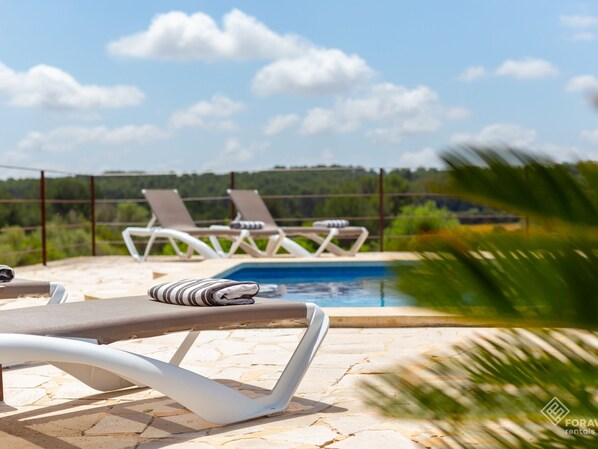 This charming finca is located on the outskirts of Algaida, in a very quiet rural area. The house, recently renovated, is decorated with great taste and is very comfortable and spacious. It is fully equipped and has everything you need to spend a dream vacation. As far as the exterior is concerned, it has a nice garden surrounding the house, several furnished terraces and a fantastic pool from where you will enjoy spectacular views of a valley.