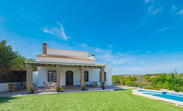 The accommodation has a large fenced plot where you can park your vehicle with total safety. Outside, relax in the private pool or take advantage of the covered porch to enjoy the pleasant Malaga climate.