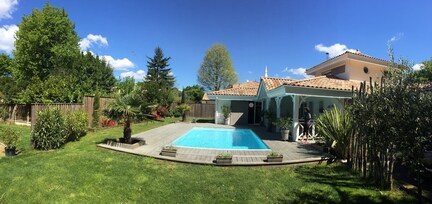 Cette maison de vacances à l'atmosphère familiale à Andernos-les-Bains se situe face à l'océan, à 3 km de distance de sites comme Landes de Gascogne, Plage de Betey et Plage de Mauret. Plage de la Jetée et Bassin d’Arcachon se trouvent également à moins de 3 km de distance.