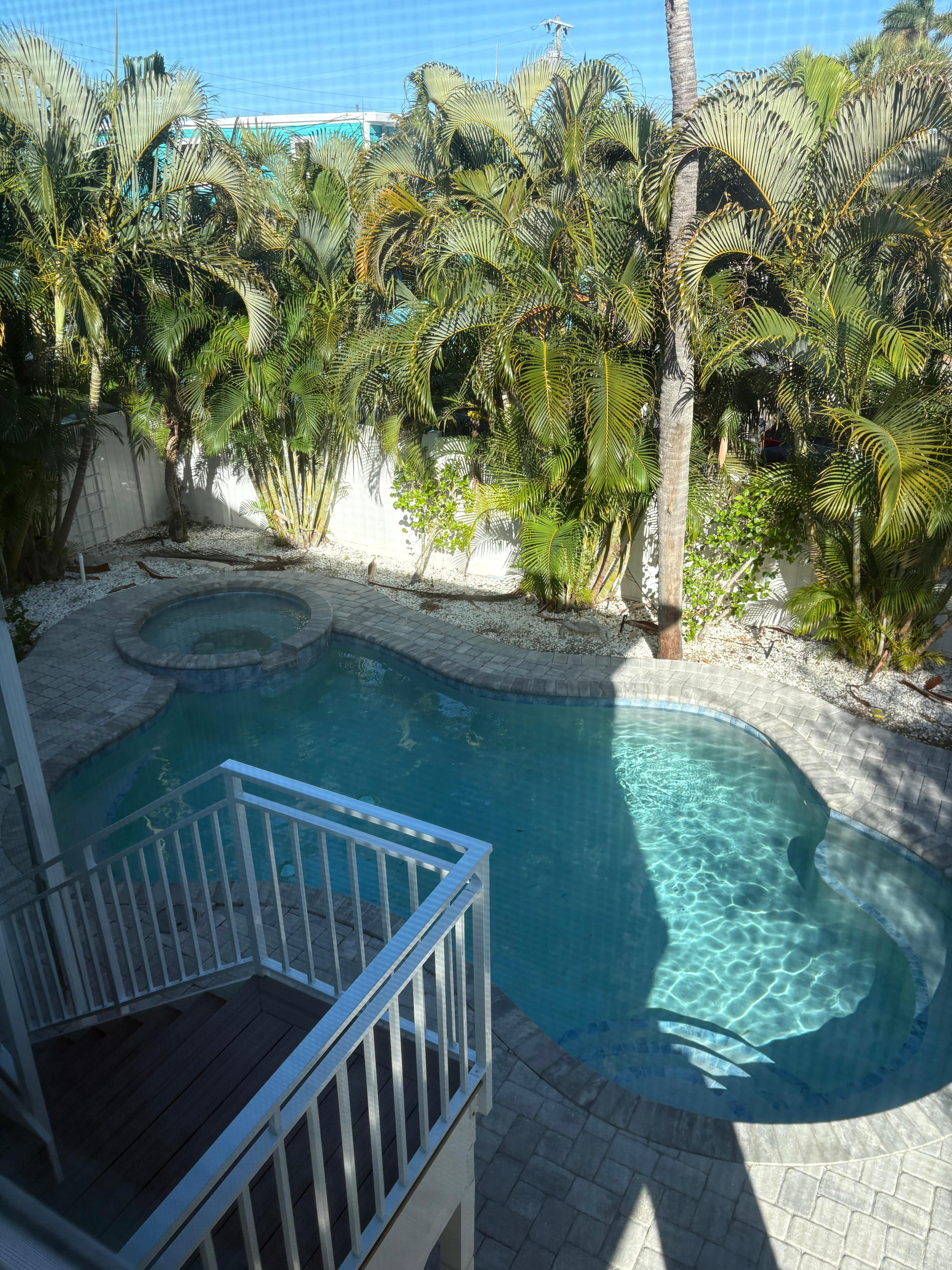 Within walking distance to the ocean. Nice front porch, nice master bedroom with bath and private balcony over the pool. Pool and hot tub was exceptionally nice! Enjoyed during the day and at night. This house is in a perfect location. Walk to restaurants, general store and shopping. At the heart of it all. We will definitely stay here again!