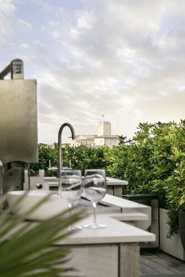 This penthouse is located on the top-floor apartment on 7th floor with a stunning, uninterrupted panoramic views over the sea and old Antibes, extending from the Alpes in the North, over the old fort and ports, to the Cap d'Antibes in the South. The view will give you a taste of what old Antibes has to offer.