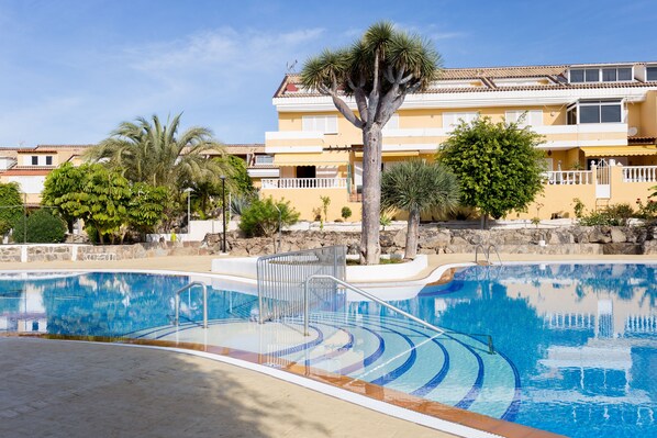 Appartement in de bergen met een buitenzwembad, op 8 minuten stappen van Las Vistas-strand