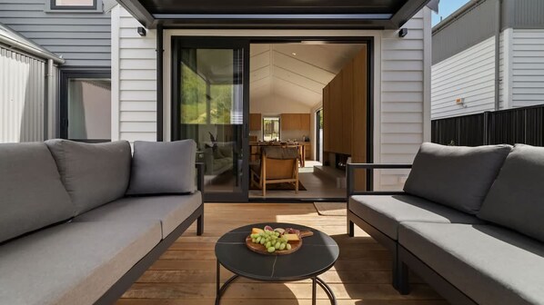 Outside, the expansive deck is the perfect place to soak in the natural beauty of Arrowtown. Unwind in the spa pool, cosy up by the outdoor fireplace, or fire up the BBQ for a delicious al fresco meal.