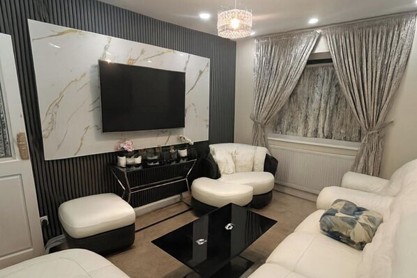 - Bright and comfortable living area with TV and reliable internet