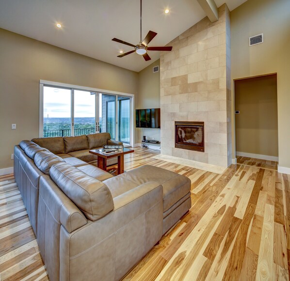 This spacious vacation rental is drenched in natural light and enjoys spectacular hill country views from almost every window. A large open kitchen with island bar and pendant lighting will make catering a breeze on those nights you want to stay in. Alternatively, enjoy a glass of wine on the terrace.