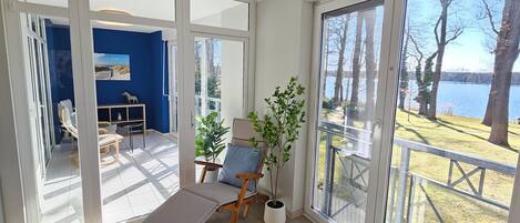Charming apartment in Bad Saarow Castle Park, direct lake view, sleeps 6, fireplace, infrared cabin, 1st and 2nd floor