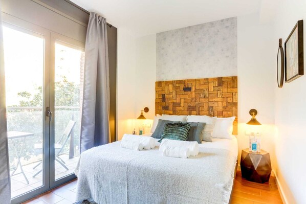 Our local designer has created an elegant space, with floor-to-ceiling glass windows that flood the rooms with light. A sweet patio invites you to relax outdoors, and the state-of-the-art kitchen has everything you need to prepare a Spanish feast. Two luxurious bedrooms will help you drift off to sleep at the end of a long day exploring. Premium amenities include free WiFi, cable TV, high-end toiletries, hotel beds and linens, and a Nespresso machine.