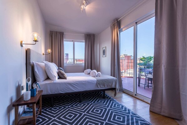 First the good - I chose this property because I loved the rooftop patio and adjoining master bedroom that looked over the patio and the city. This is a great space that we used a lot. Check-in process was smooth, and Sweet Inn Barcelona followed up to ask if we had all we needed. The Wi-Fi either didn’t work or wasn’t hooked up, and after multiple attempts to resolve they finally fixed it on day 4 of our 5-day stay. The unit is sparsely decorated and although functional, the layout is strange as the master bedroom is connected only to the other bedroom and the patio, so if you had a couple in each bedroom and had to go to the bathroom in the night, you would need to go either outside or through the other bedroom. We were only 2 so not a problem for us but would be for larger groups. The flooring is cheap and poorly layed with multiple gaps, and the locks on the sliding doors to the patio don’t work, so theoretically someone from another rooftop unit could easily break in. The neighborhood is decent and you can get to most city sites fairly easily, though in retrospect I would have preferred booking a place nearer the gothic quarter. Not one of the best places I have rented, but perhaps not the worst.