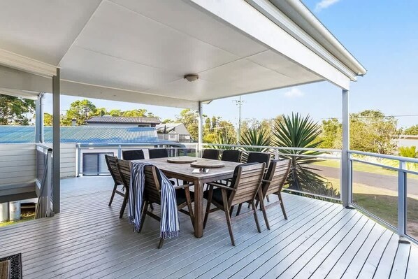 This relaxed, well appointed, double storey home is where your family holiday fun begins. Accommodating 8 guest, with 3 bedrooms, two bathrooms, multiple outdoor living spaces, and a fully equiped kitchen including dishwasher and Delonghi coffee pod machine. Enjoy a BBQ with family on the large covered front deck or cosy up in front of the fireplace during the cooler months. (Please note, fire wood is not provided, guests are required to bring their own firewood. This can be purchased at the Termeil petrol station)