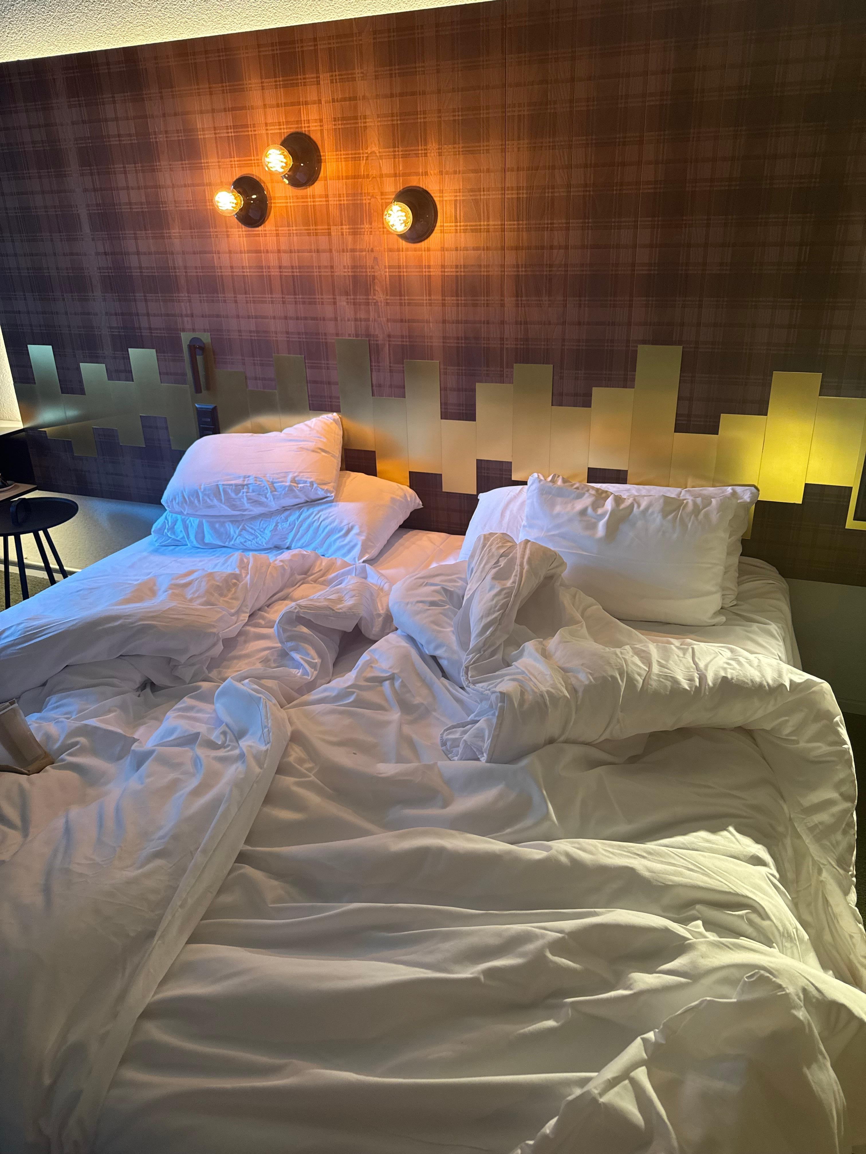 Décoration des chambres désuète, processus Check-in un peu long, qualité de la literie et des oreillers moyenne, les rideaux laissent passer de la lumière, et les chambres ne sont pas bien insonorisées