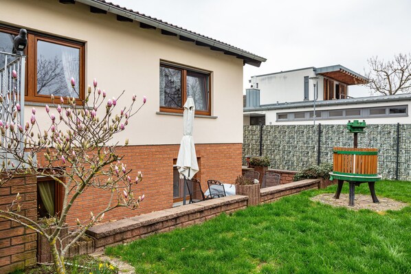 The cozy vacation apartment "An den Weinbergen" in Bingen is the perfect accommodation for a stress-free vacation with your loved ones. It has a separate entrance and is ideal for up to 4 people. The 65 m² accommodation consists of a living-bedroom, a fully equipped kitchen, a bedroom and a bathroom. The amenities also include high-speed WiFi, as well as books for bookworms and DVDs. A baby crib is available upon request. The windows are equipped with insect screens.