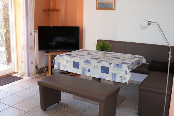 Le Tannenhof Meier, à Bliedersdorf, est un appartement de 4 pièces aménagé avec goût, réparti sur trois étages. Il est idéal pour les personnes en quête de détente. Nos trois chambres au premier étage sont meublées avec un lit double, deux lits simples, un lit simple et une grande armoire. Le couloir mène à la salle de bain à la lumière du jour. La salle de bain a une douche à l'italienne. La cuisine s��parée entièrement équipée est située au rez-de-chaussée et est accessible via l'entrée et le coin repas. De la salle à manger mène à la terrasse, où vous pourrez profiter du soleil tôt le matin. Dans le grenier, vous pourrez terminer la journée sur le confortable canapé avec lecture ou télévision.
