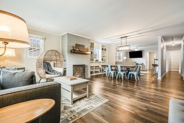 House was unassuming from the outside, but the inside was totally remodeled and very nice. Everything has been updated and it was clean and spacious. Plenty of room for our extended family to eat, sleep and relax. Location is great! We were able to walk to restaurants and there is an adorable antique store right in the backyard.