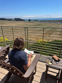 The outdoor spaces of Bodega Bay Bliss are nothing short of spectacular. The expansive patio offers uninterrupted views of Doran Beach and the Pacific Ocean, creating the perfect setting for outdoor dining, relaxation, and enjoying the coastal breeze. A private hot tub is available for year-round enjoyment, ideal for soaking under the stars. For outdoor entertaining, a built-in BBQ grill and gas fire pit create a perfect space for evening gatherings.