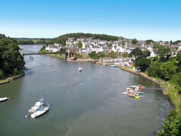 Large, cosy single-family house "Glann Aven". In the resort 200 m from the centre of Le Bono, 5 km from the sea, 5 km from the beach, directly by the river, in a cul-de-sac, south facing position. Private: well-kept terraced garden, 300 m2 (fenced), parking at the house. Shop 200 m, supermarket 4 km, restaurant, bakery 200 m, bus stop "Le Bono centre" 1 km, sandy beach "Pointe de Locmiquel" 6 km, indoor swimming pool 4 km, thermal baths "Thalassothérapie Thalazur" 16 km. Golf course (18 hole) 16 km, sailing school 6 km, riding stable 4 km, walking paths from the house 5 m. Nearby attractions: Auray et Saint Goustan 4 km, La Trinité sur Mer 12 km, Carnac 16 km, Vannes 35 km, Le Golfe du Morbihan, Presqu'ile de Quiberon, Belle ile en Mer. Hiking paths: Le Golfe du Morbihan.