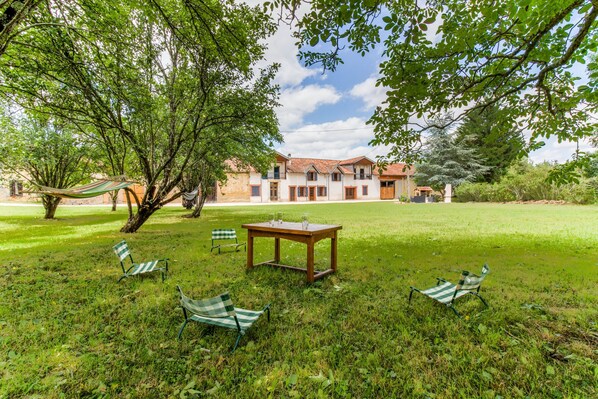 - Modern 60 m² fully-equipped kitchen with wooden dining table, 10 chairs, dishwasher, oven, hob, coffee maker, toaster, electric kettle, crockery and cutlery. Access to a shaded north-facing terrace for midday meals.