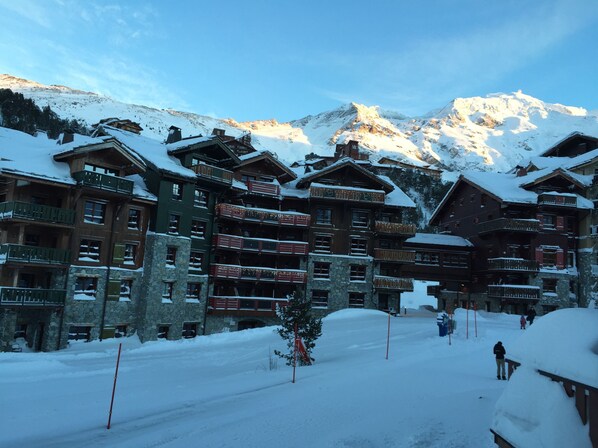 It has a view of Mont Blanc from the balcony, great views of the Aiguille Rouge and the Arc 2000 mountains and is close to the Deep Nature Spa with its treatment rooms, hammam and indoor swimming pool (with entry fee). Note: Sources de Marie also has its own free hammam and fitness room, as well as free entry to the swimming pool in Auberge Jerome.