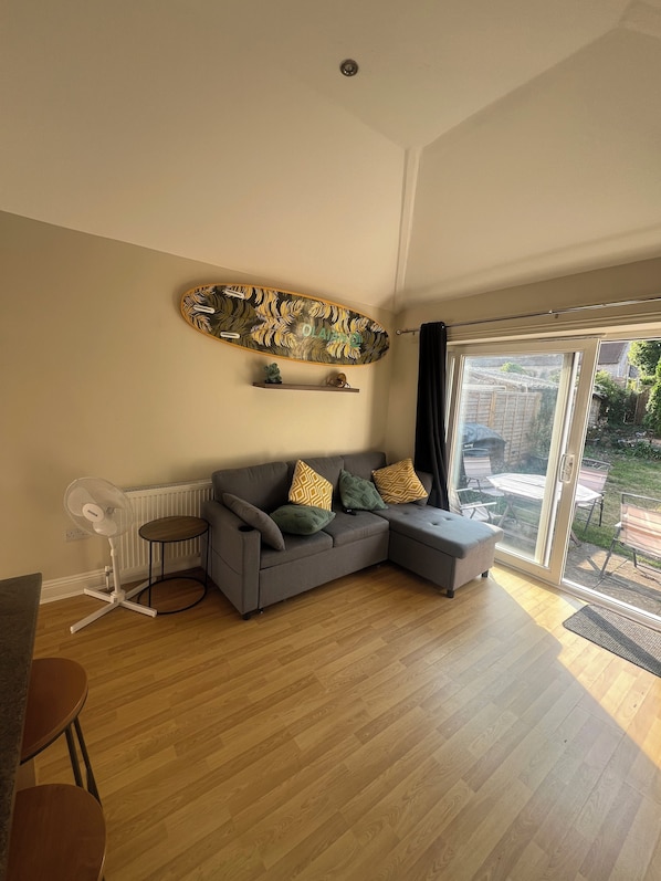 One bed open plan with large garden by the sea !