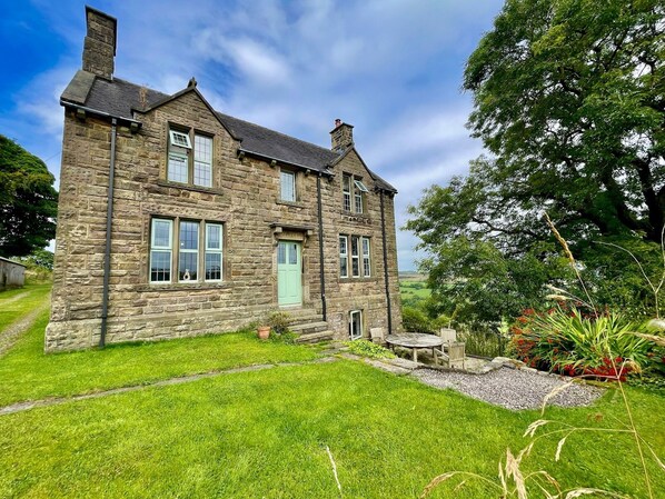 Enter through the side door into the bright, dual-aspect kitchen with sweeping Peak District views. Turn right to the dining room, where original William Morris parquet floors set the tone for a truly unique stay.