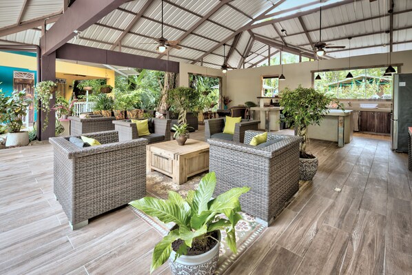 Spacious, well-kept, owners available on site, best ocean for all levels of ability and fun just a few steps away. Many activities and food within walking distance. The open air kitchen/living area next to the pool is comfortable whether it rains or shines. We hope to return.