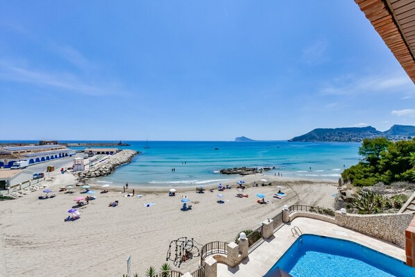 El edificio cuenta con una preciosa piscina comunitaria con magníficas vistas al Peñón de Ifach y a la playa. (Consultar horarios de apertura).
