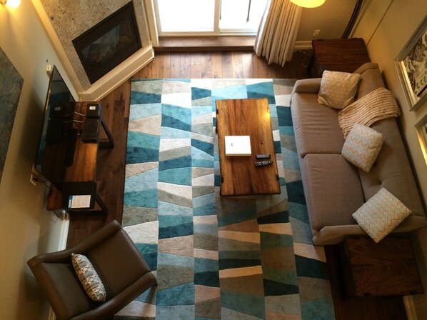 - Large flat screen TV, fireplace and access to your private balcony and bbq.