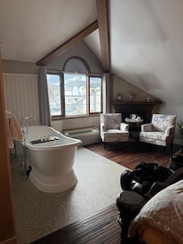 Deluxe suite, 2 queensize bedden, open haard