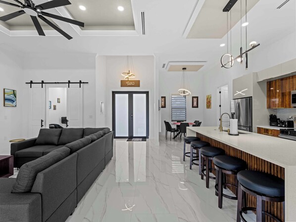 Gather here to binge-watch the latest Netflix show, listen to music, plan your upcoming activities, and much more in the heart of a modern open-concept living space.