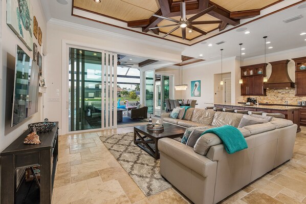 This house was built and designed to entertain. There are multiple zones of Sonos to stream your favorite music. Open all 77ft of oversized doors in the winter months to blur the lines in your own private resort style villa. Make it your party destination in beautiful SWFL.