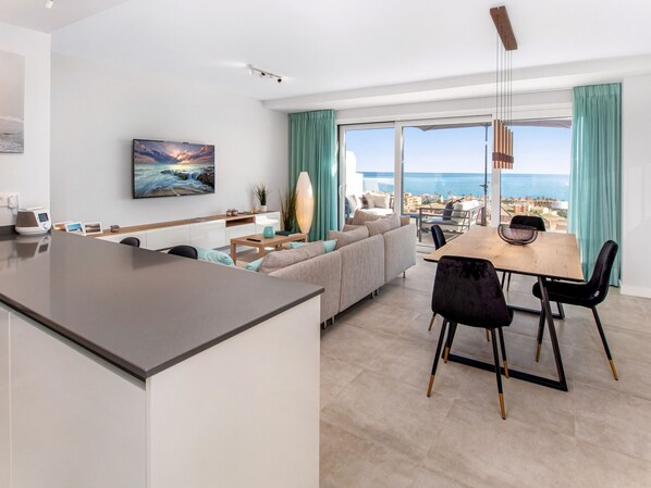The luxurious contemporary apartment includes 2 bedrooms and 2 bathrooms. The open kitchen is fully equipped with all types of high-end appliances and accessories. The living room is spacious, bright and completely open onto a large terrace. The interior and exterior finishes are integrated into a current high-quality concept, combining comfort and luxury.