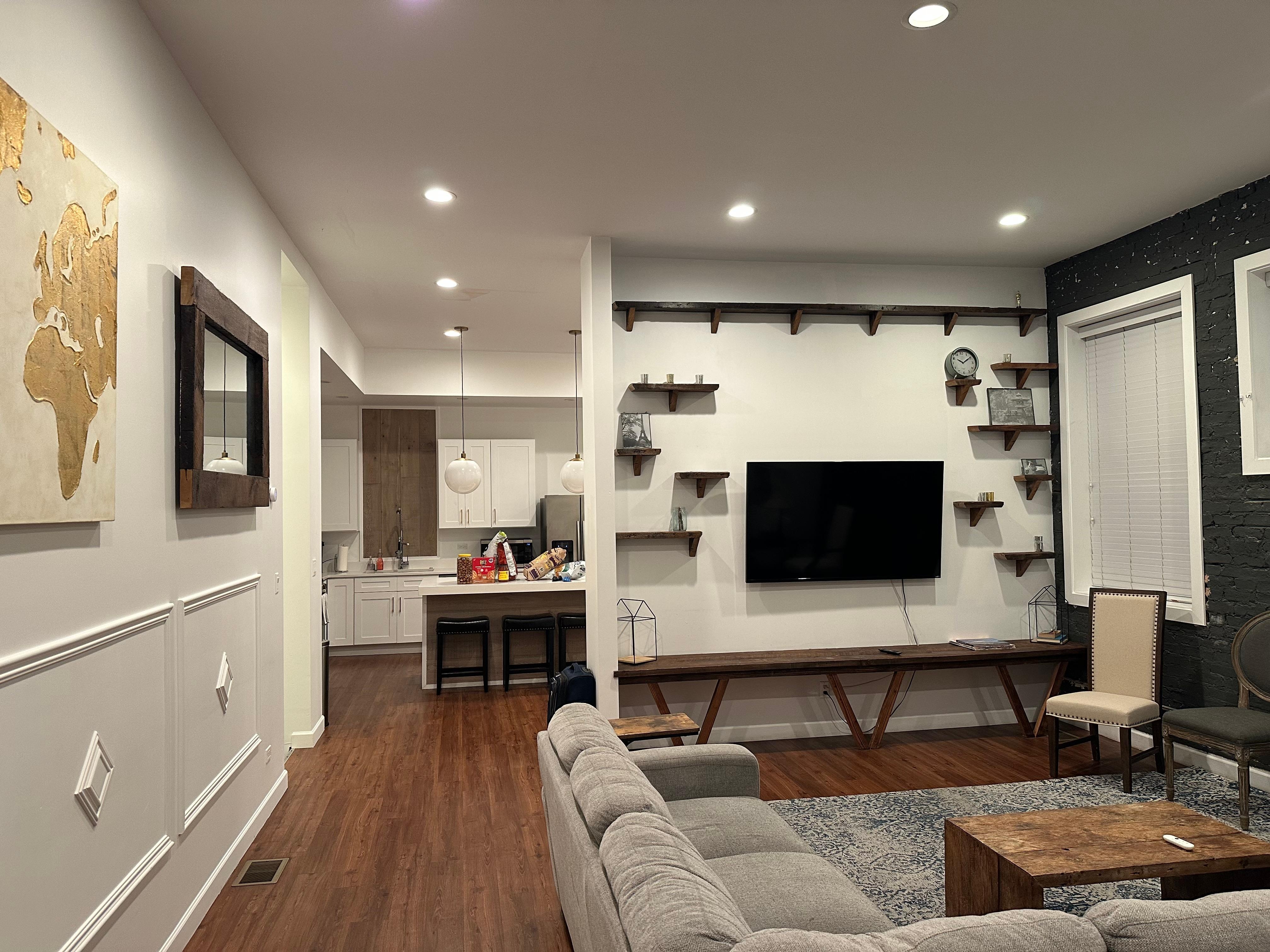 Chicago (its neighborhoods!). The living room is a converted store front, so