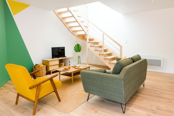 Vous serez séduit par notre appartement qui vient d’être totalement refait à neuf et décoré dans un style contemporain aux notes végétales. L’appartement est totalement équipé avec du matériel et de la literie de qualité pour vous offrir les meilleures conditions pour votre séjour.