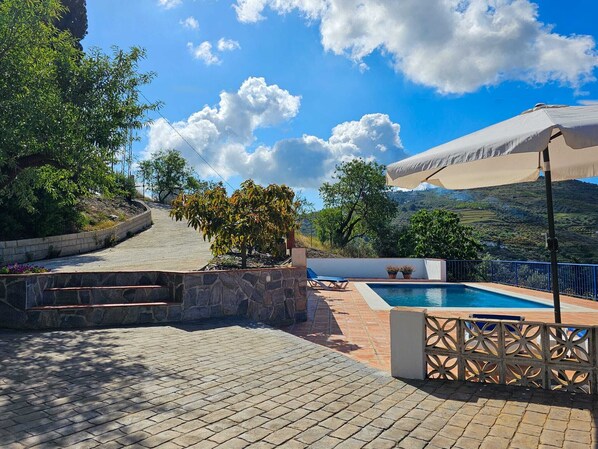 Your private outdoor area includes a pool, a garden, an open terrace, a covered terrace, a barbecue and an outdoor shower. The open terrace is furnished with sun loungers and the covered terrace is furnished with comfortable seating, a table and chairs. Relax on the sun loungers while gazing at the surrounding mountains and greenery, and refresh yourself in the pool afterwards.