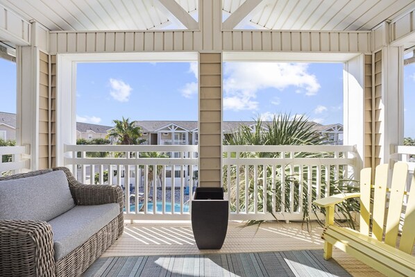 This North Padre Island Paradise is missing nothing but you and your family. This beautifully remodeled, three bedroom townhome offers everything you need for an Island getaway. Kitchen is fully stocked with dishes, pots & pans, flatware, toaster, electric can opener and even a heavy duty blender for making smoothies or a frozen drink to enjoy by the pool. A broad selection of spices and other kitchen basics makes preparing meals a breeze. Cozy up to the breakfast bar with a hot cup of coffee or tea prepared in the Keurig. Enjoy direct access to the pool from the bottom floor bedroom or enjoy the view from either of the 2 upstairs balconies. Evenings with the kids will be a blast in the bright and cheerful living room with cable TV and a full selection of board games. After a relaxing day at the beach you'll love to cozy up in the luxurious silky linens provided. The Master retreat has a spacious King size bed. The 2nd bedroom features a queen bed and a day bed and the 3rd bedroom also has a two full size bunk beds. All bedrooms boast plenty of privacy with their own bathrooms en suite and are stocked with plenty of fluffy towels and walk in closets as well as smart TV's. A private grill and beach toys are provided in the garage. Sorry.....NO PETS permitted. This is a non-smoking property. Come stay a while!