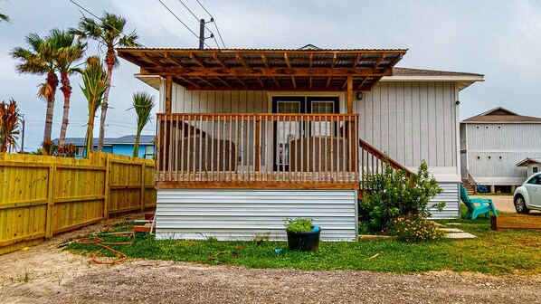 Make your reservation to stay at this newly remodeled cozy cottage in town, trimmed with Bahama-style shutters. It is located 1 mile from the beach, shopping and nightlife. This is a great place for a romantic getaway or a small family vacation. It is slightly elevated with seven steps leading up to the welcoming covered porch, perfect for sipping coffee in the ocean breeze. The open living room holds an overstuffed sofa with plush pillows, two matching armchairs with ottomans, and a wall-mounted TV to gather for watching movies. Prepare meals in the kitchen furnished with sleek countertops, crisp cabinets, white appliances, a Keurig coffee maker, dishes, basic pots, pans, and utensils. Dine at the bar height table for four or use it to play a friendly game of cards. The full-size washer and dryer are tucked neatly in the corner for use during your stay. Retreat to the bedrooms for a good night's rest after a full day on the town and beach. The master bedroom (BR1) contains a King-size bed, nightstands, and a closet for your beach attire. The guest bedroom (BR2) is made up of two Twin over Twin bunk beds and a closet. These rooms share a hall bathroom comprised of a modern vanity and tub/shower unit. Come see what Port A has to offer, and book your next getaway at the charming Redfish Alley D.