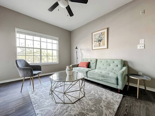 Enjoy a comfortable and well-equipped stay in this modern 1-bedroom apartment, offering everything you need for a relaxing and hassle-free experience. The space is fully furnished with all the essentials, including quality amenities and toiletries to make your stay enjoyable. The apartment includes a cozy living room, a functional kitchen, a comfortable bedroom, and a clean, well-maintained bathroom. For added convenience, the living room also features a futon, perfect for extra sleeping space. It’s the perfect choice for a practical and pleasant stay.