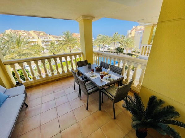 Plezier voor het hele gezin op het strand, met een buitenzwembad