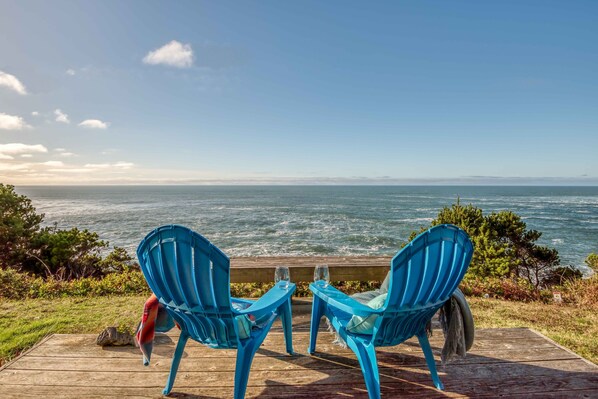 Bienvenue à Serendipity à Depoe Bay! Ce chalet avec une chambre et une salle de bain est situé sur une falaise surplombant l'océan Pacifique. Vous aurez beaucoup de place pour vous, un invité et votre ami à quatre pattes préféré, faisant de cette maison de location un lieu de séjour idéal pour un week-end en couple! Entrez et installez-vous pour votre séjour! La grande terrasse avec la porte d'entrée est un endroit idéal pour profiter du soleil pendant les chauds mois d'été!