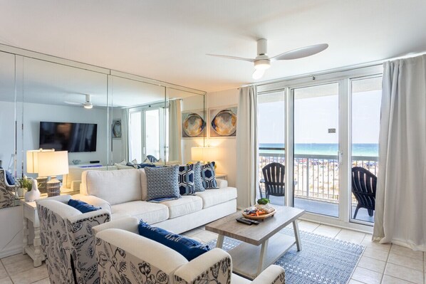 This beautiful condo just underwent a renovation, and the results are a bright, beachy and comfortable surroundings so that you can enjoy your vacation. The new furniture and thoughtful decorations add to the overall feeling of comfort and relaxation. The renovations included new paint, light fixtures, bathroom cabinets and faucets, quartz countertops, stainless-steel appliances, furniture, furnishings and more!