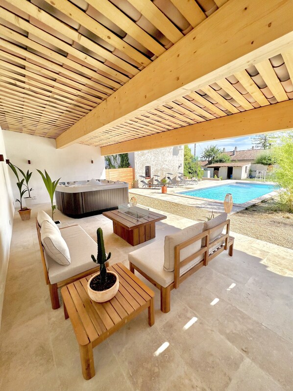 Appartement met een buitenzwembad en een bubbelbad in Lorgues