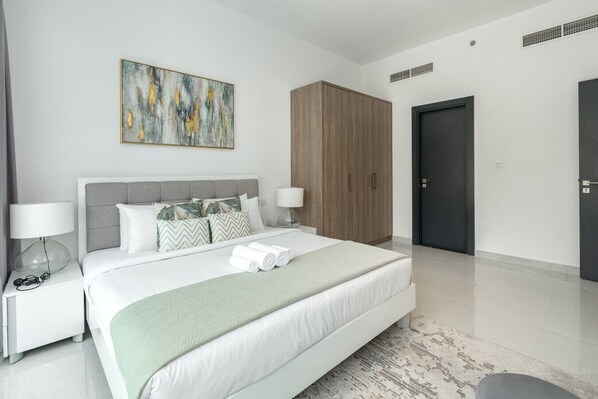 Alle kamers bij Upgraded 1BR Near Miracle Garden | Building 88 hebben leuke bijkomstigheden zoals airconditioning, naast voorzieningen zoals eettafels en wifi.