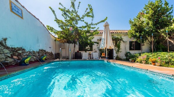 La maison principale se compose de deux étages et de 340 m² avec patio intérieur, barbecue et piscine.