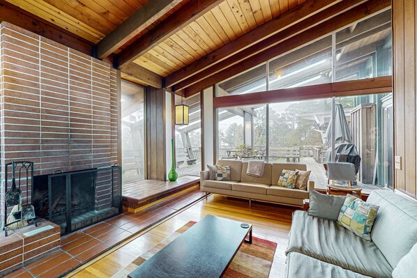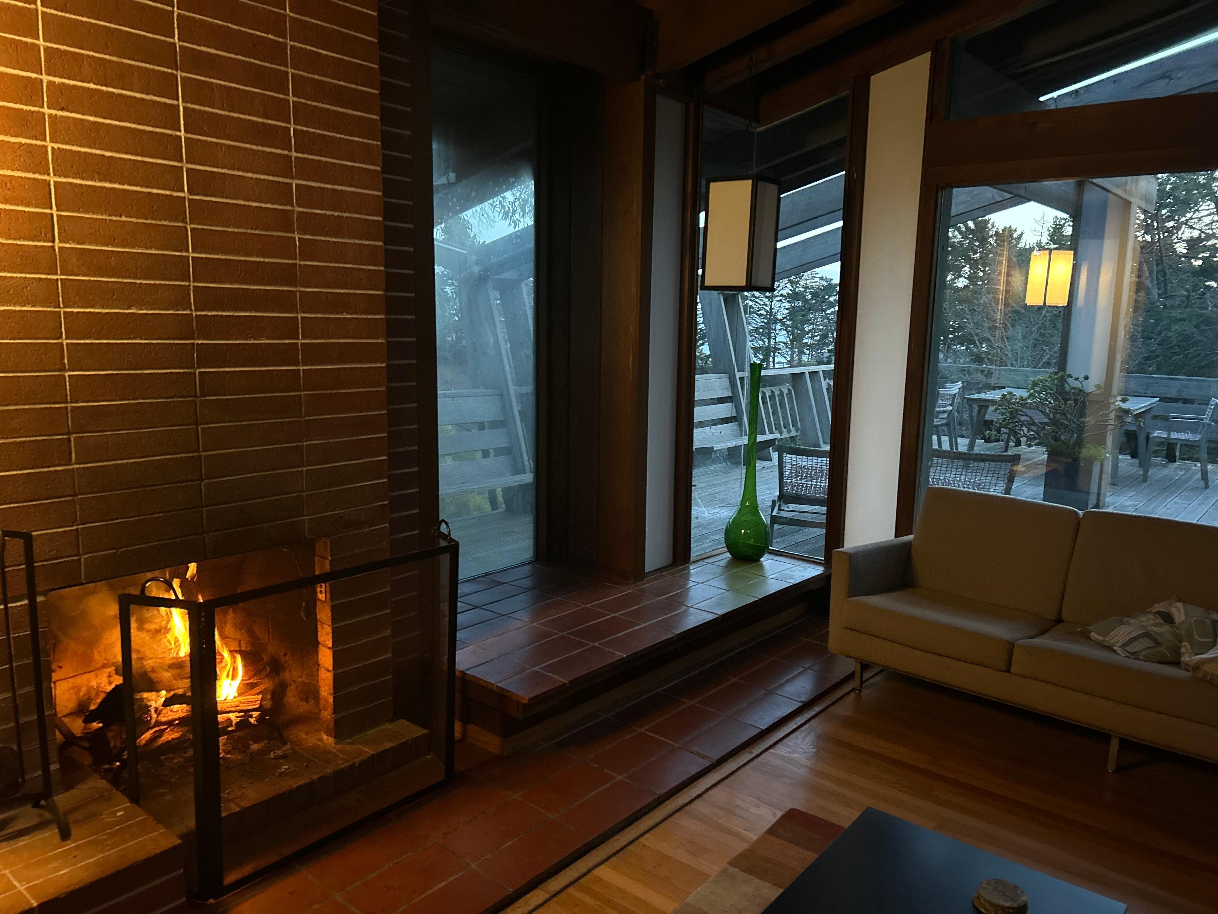 Looks like nothing from the street then -- WOW. This place is incredible. Inspired by Frank Lloyd Wright with floor to ceiling windows that overlook one of the most incredible views of the Pacific Ocean you will ever see. Otherworldly. The only downside is that Vacasa/VRBO forgot to email us about the house's broken furnace so we had to have a fire going and keep 4 space heaters going full-time to survive the below 40 degree temps outside. I very much appreciate that the rental company refunded much of our rental fee to accommodate but do wish they hadn't rent out a place with no heat during wintertime.
