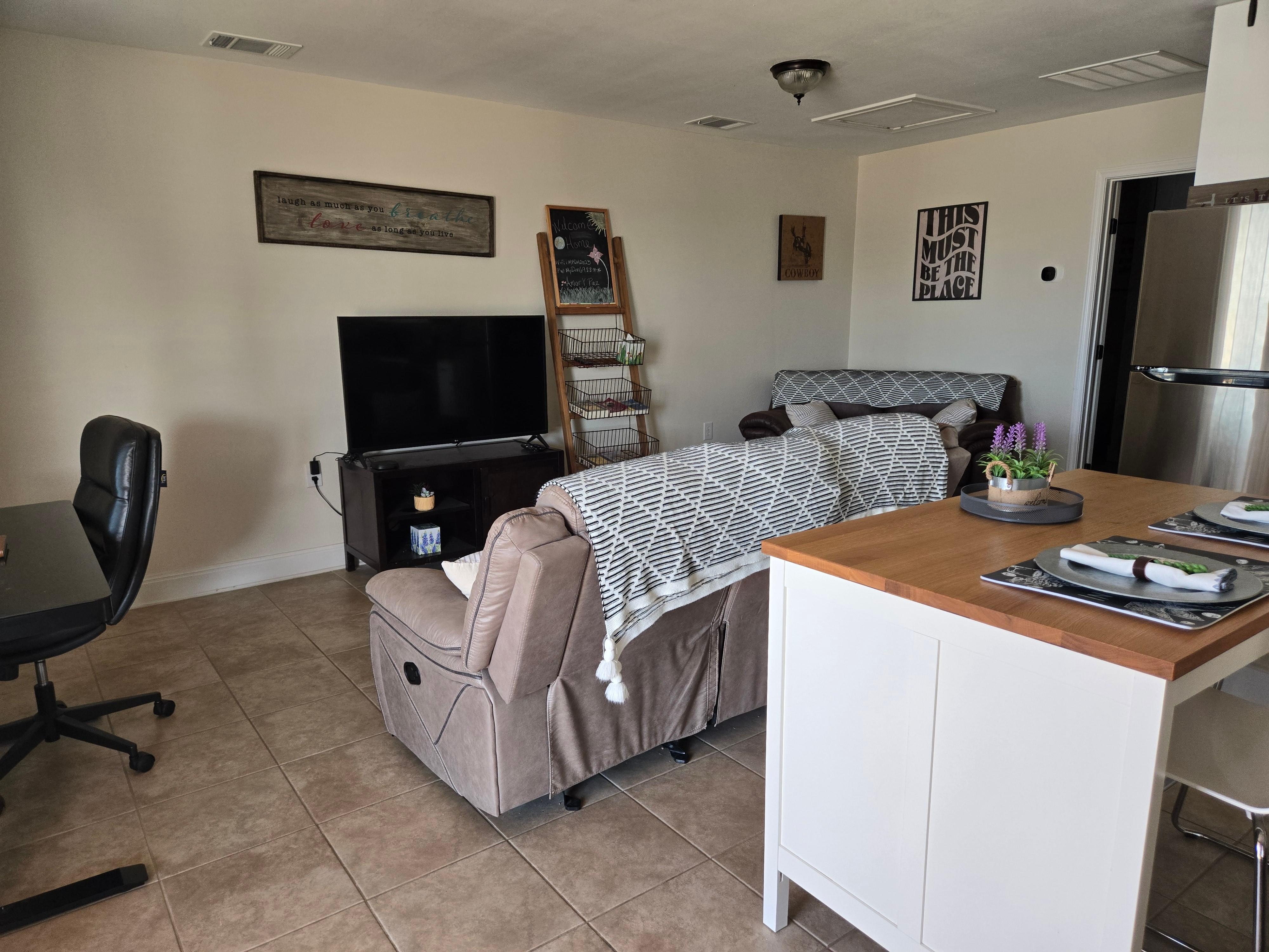 Every aspect of our long-term stay w/pets hit 5 stars. We had to find a new place quick because our initial place in Killeen was filthy & moldy. My allergies went wild right away. We found this well maintained little apartment out in the country. It was perfect being away from the hustle and bustle, but close to Austin, Waco, and our friends in Kempner. It was clean with every little detail taken care of (e.g., lint roller, fully stocked, night lights that doubled as flashlights, doggie bags, etc.) It is surrounded by a fence with lights so our dogs had space to explore. The host was amazing going out of his way to ensure our comfort and safety (ice storm). We hope to get back there in the future. We would highly recommend this place to anyone interested in a Central Texas stay. It is exactly as described and more. Thank you Vrbo and to our host.