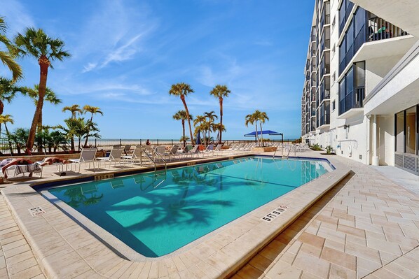 Beschikt Beachfront Condo, gorgeous views, shared pool and beach access over een zwembad?