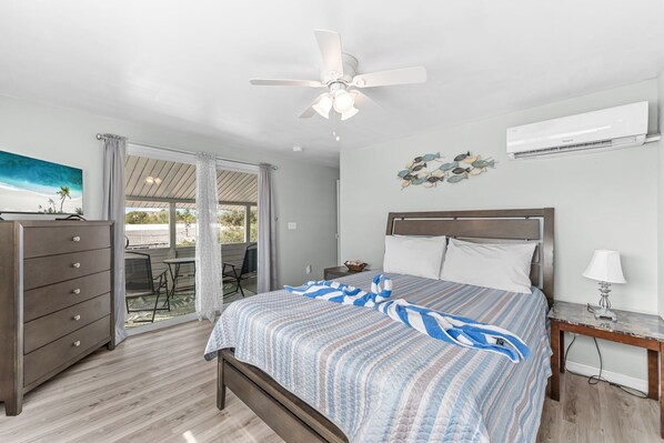 The Starfish at Seaside Retreat, your unique place in paradise, is a beautifully renovated 1 bedroom, 1 bath, second floor apartment located mid island in a tranquil neighborhood. Two blocks to the beach with easy beach access points. Relax in comfort on the front porch sipping your favorite drink while the sunsets stream light through the palms. Hotel style linens and towels help you rest well for a full day of sun and fun!