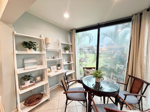 As you step inside, you'll immediately appreciate the thoughtfully designed interiors, featuring stylish furnishings and elegant crown molding that add a touch of sophistication to your stay. The living room is the heart of the home, perfect for curling up on the sofa with a book or enjoying a movie night after a day on the course and courts!