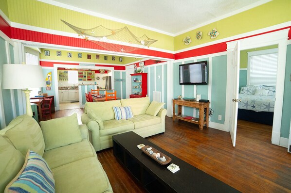 Our Coastal Beach Cottage is in the heart of Seawall Blvd and within easy walking distance to the beach (1 short block), which allows you to embrace the coastal lifestyle. More Gulf waves, views and thrilling rides await at the Pleasure Pier, which is a short 7/10ths of a mile walk. Restaurants within walking distance include The Spot, The Brick House, Gumbo Diner, Joe's Crab Shack and other Restaurants!