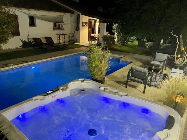 You can enjoy the 9x4 pool, the Jacuzzi Spa heated to 37 ° and can accommodate 5 adults, as well as the calm of the house in a cul-de-sac.