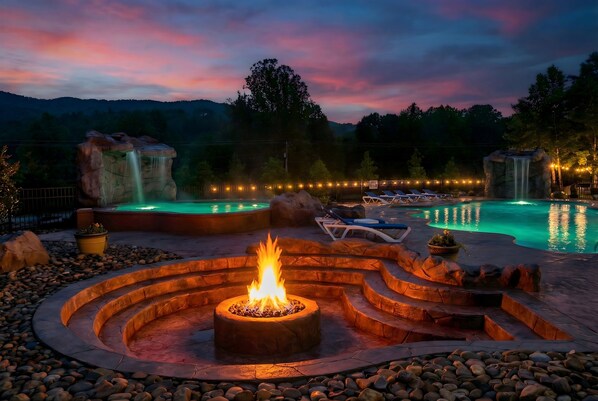 Cozy Cub is tucked inside a peaceful Smoky Mountain resort, so you get the privacy of your own cabin plus extra ways to play: pickleball, tennis, basketball, a year-round fitness center, seasonal bonfires, and a summer saltwater pool with a grotto-style waterfall. And when you want the Parkway, restaurants, and attractions, you’re close enough to enjoy it — then retreat back to your own calm, cozy space.